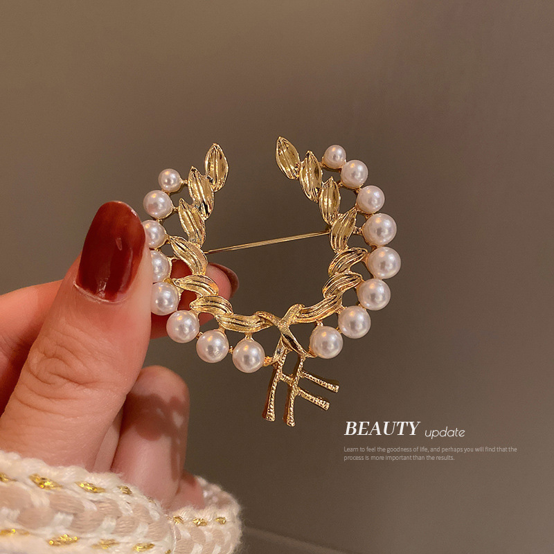 真金电镀珍珠麦穗胸针韩国东大门时尚气质别针简约小众衣服配饰品
