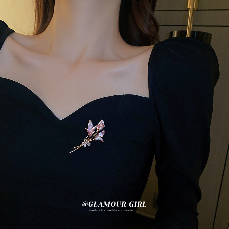 国潮风镶钻珍珠郁金香莲花花朵胸针时尚气质设计感胸饰个性配饰女