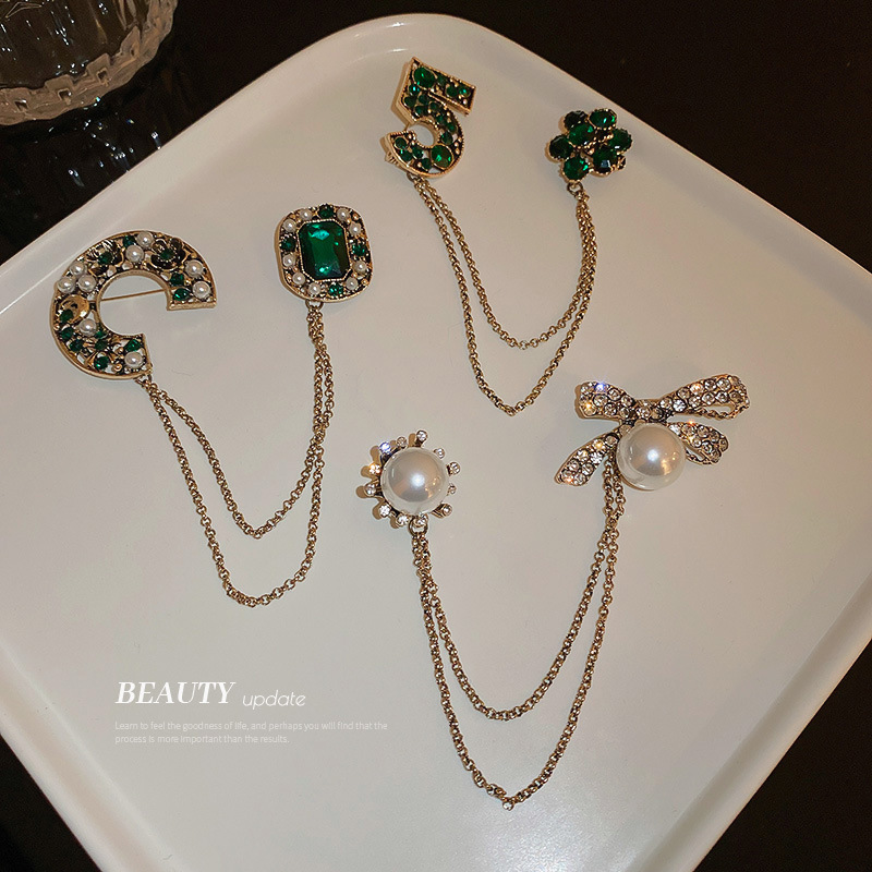 镶钻珍珠字母蝴蝶结数字花朵胸针欧美复古流苏别针高级感服饰配件
