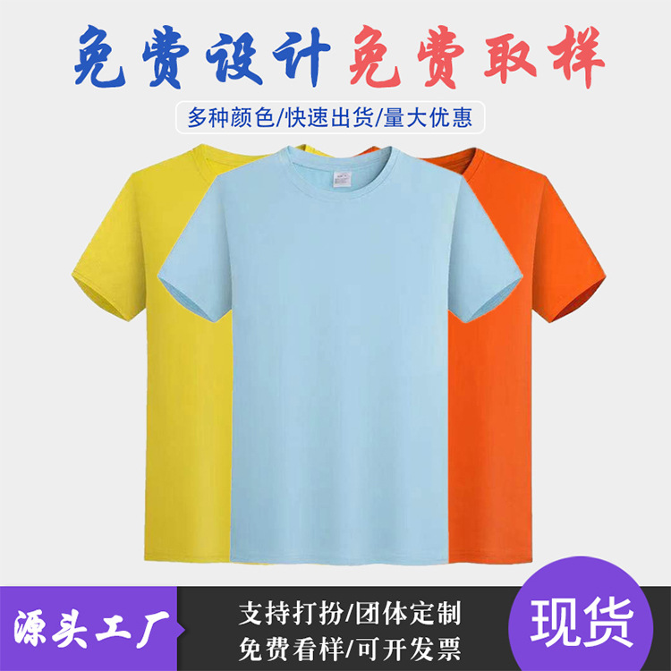 批发夏季纯色短袖广告衫文化衫工作服团体服企业logo来图印刷定制