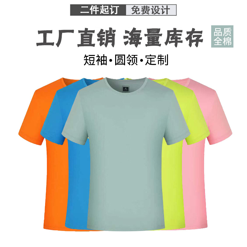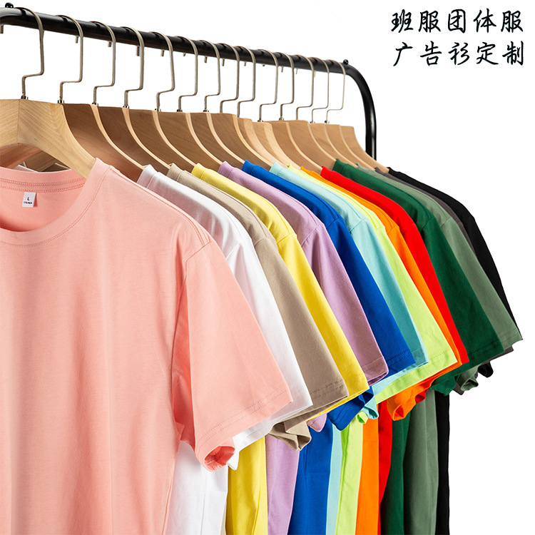批发夏季新款纯棉圆领空白短袖企业班服团体服广告衫logo来图定制