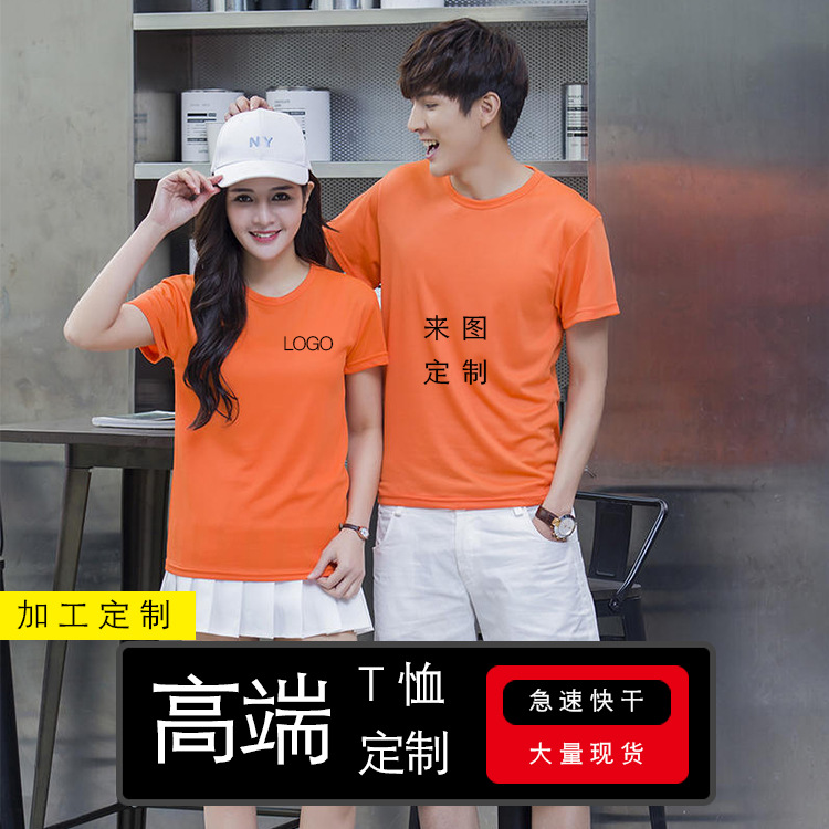 批发夏季圆领速干短袖广告衫马拉松运动衫工服团体服来图印刷制作