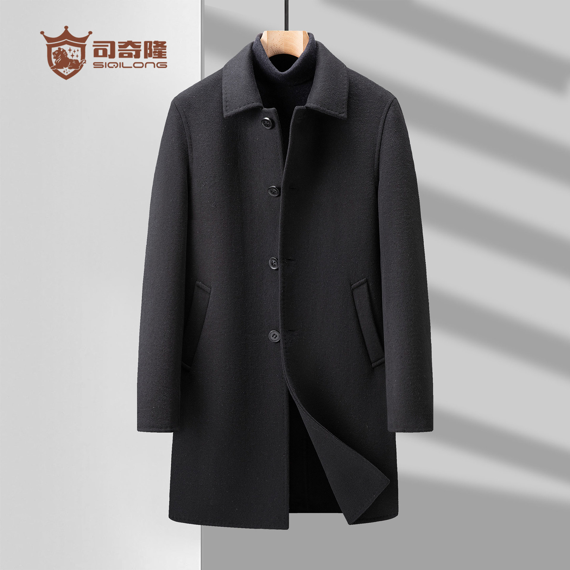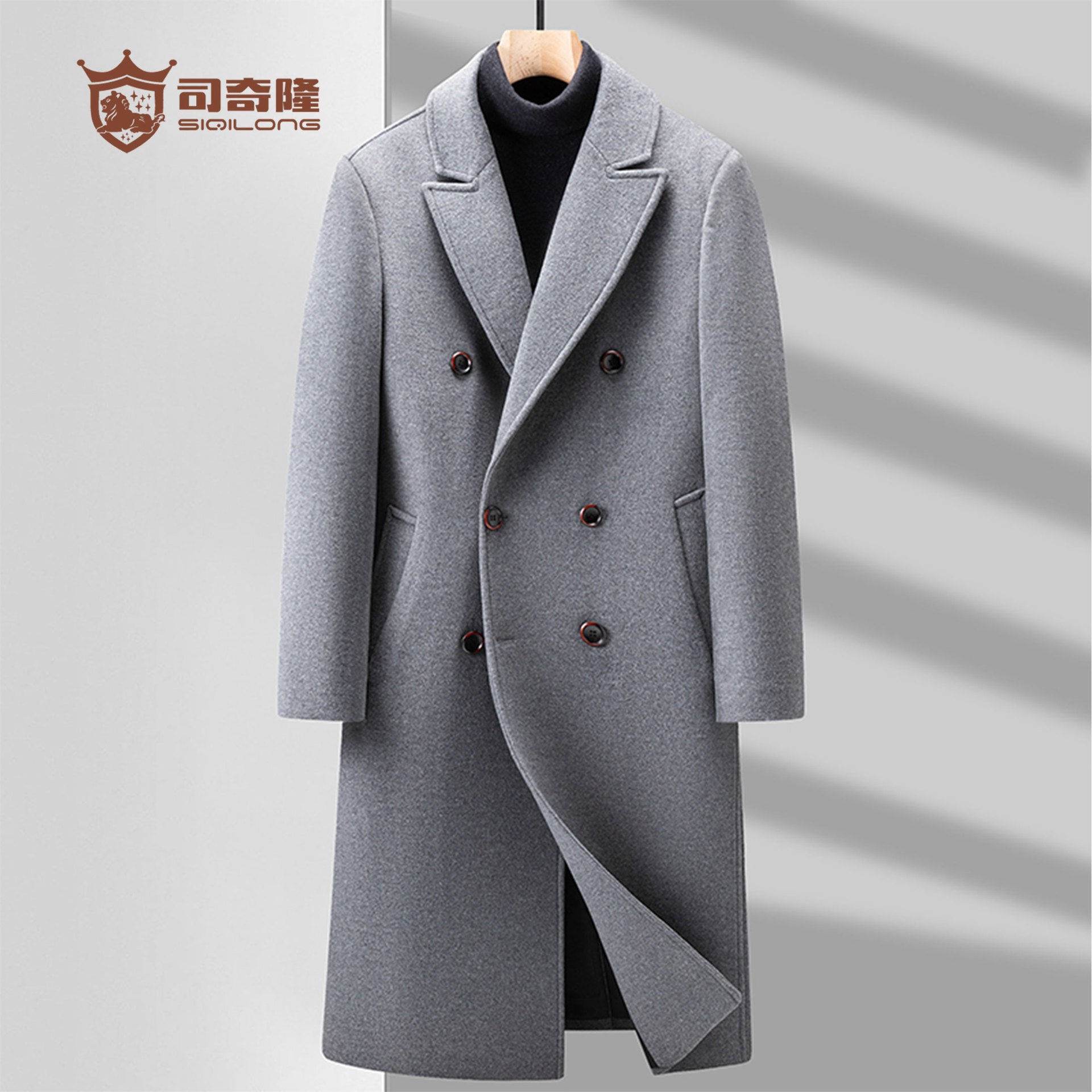 司奇隆源头工厂定制加工过膝长款轻商务羊毛双面呢毛呢大衣外套男
