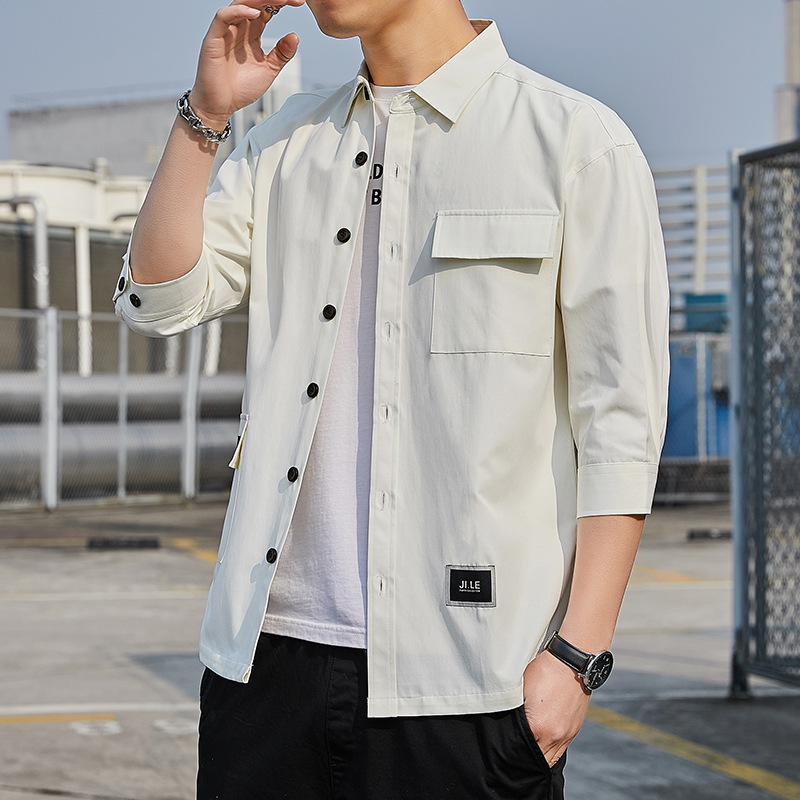 2022男士七分袖纯色潮款纯棉男衬衫大码衬衫职业装夏季全棉衬衫男