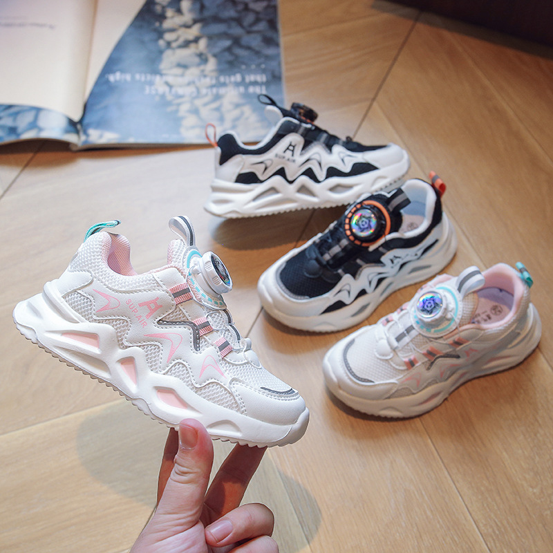 儿童运动鞋2022春秋新款网红女童旋转纽扣鞋中大童学生男童老爹鞋