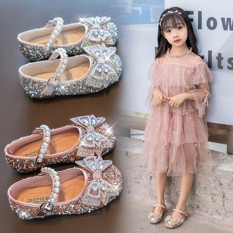 女童皮鞋2022春季新款软底宝宝单鞋儿童水钻公主鞋小女孩水晶鞋