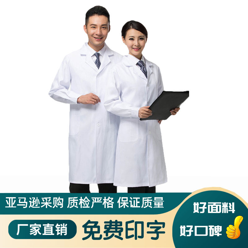 外贸加厚款医师服长袖白大褂男女医生服学生护士实验服药店工作服
