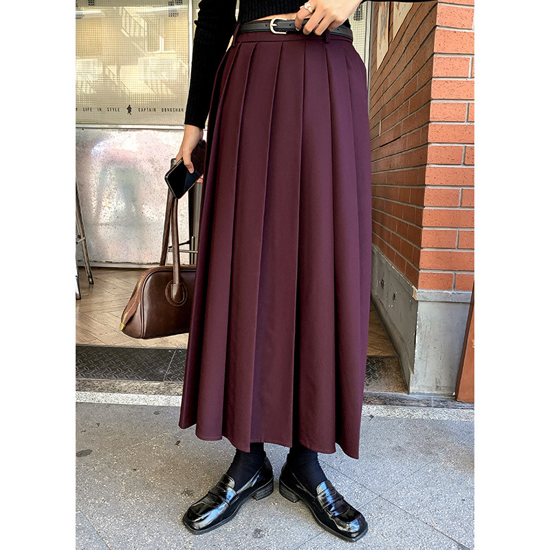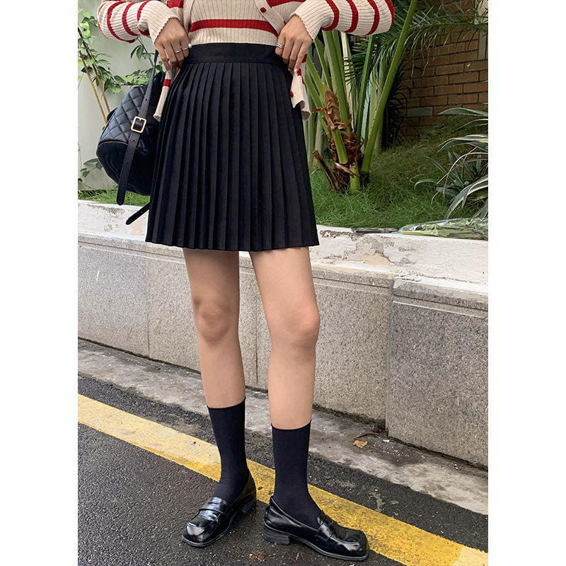 七姨 西装裙女2022秋冬新款高腰显瘦中长款a字百褶半身裙休闲裙子