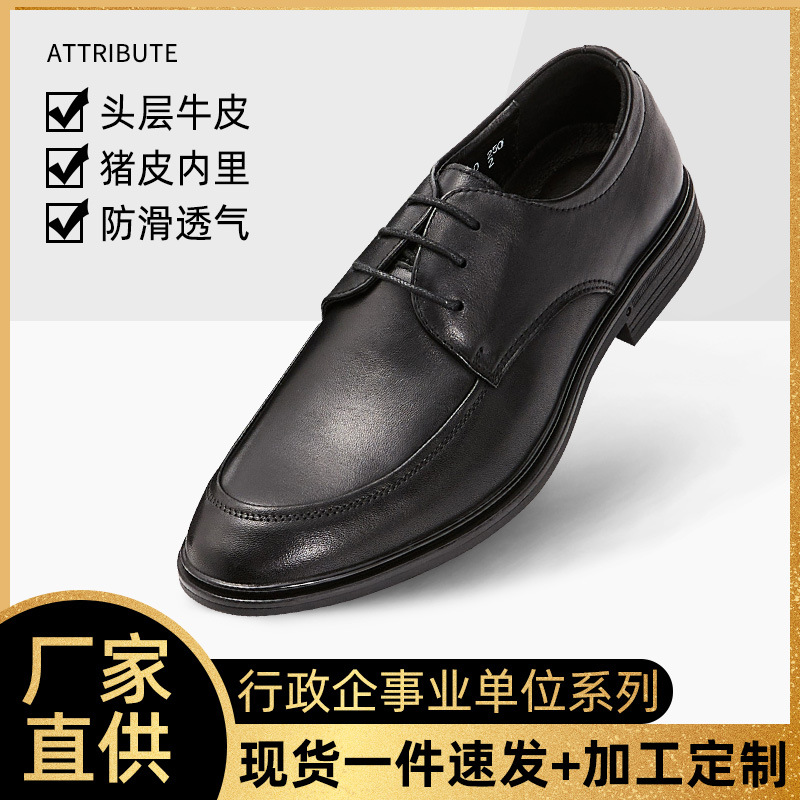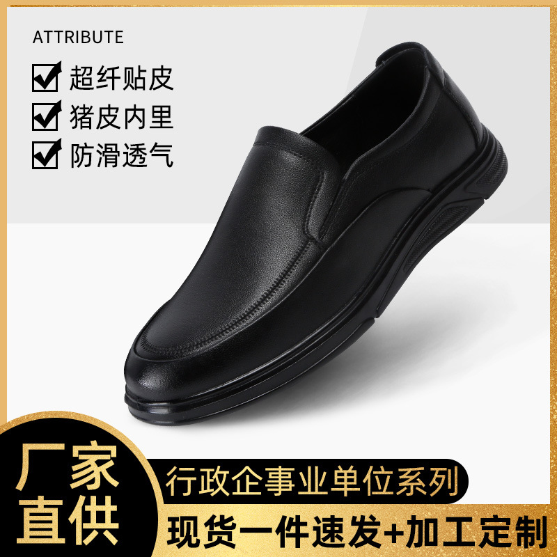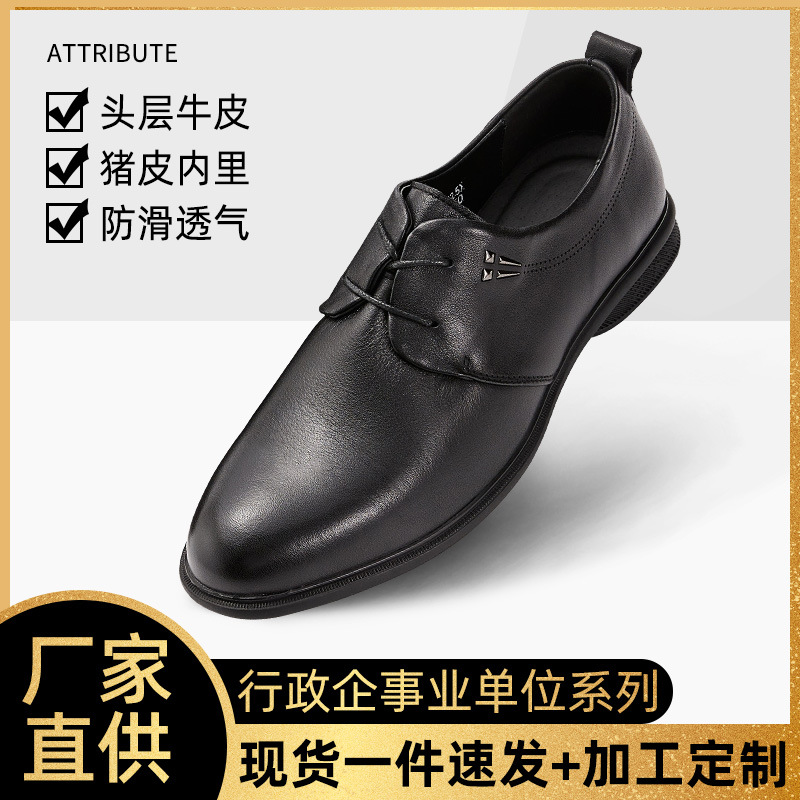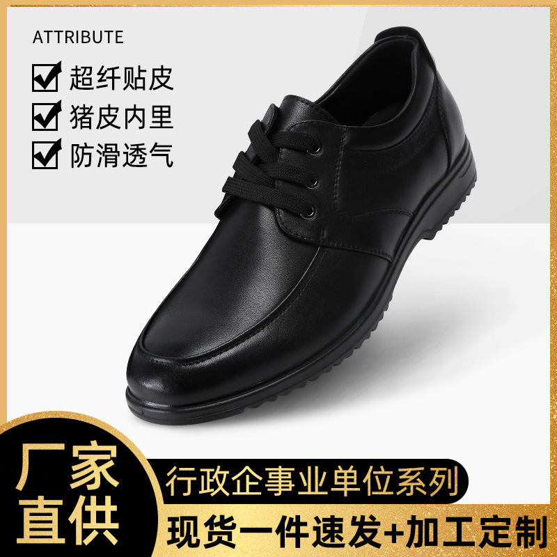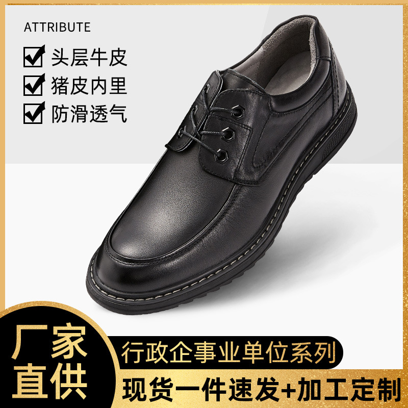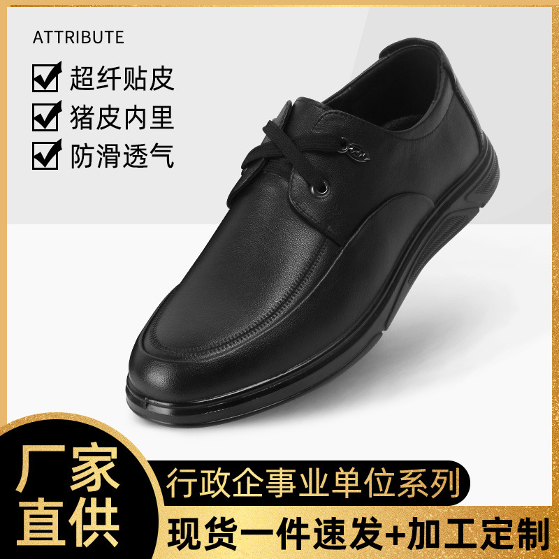 新款商务男鞋软皮休闲平底低帮鞋男圆头系带套脚工作男单皮鞋批发