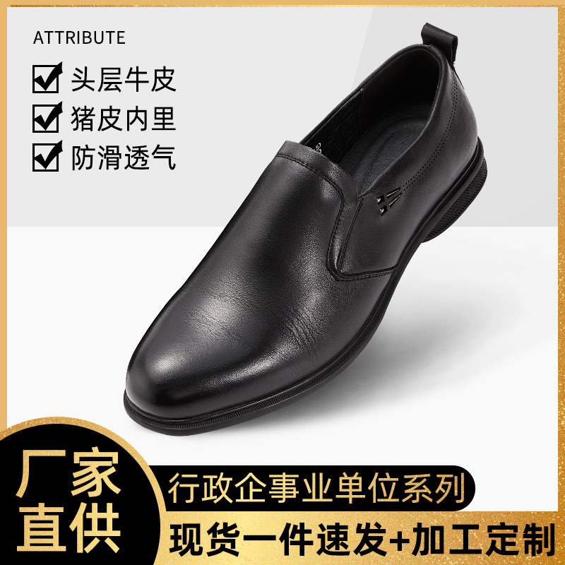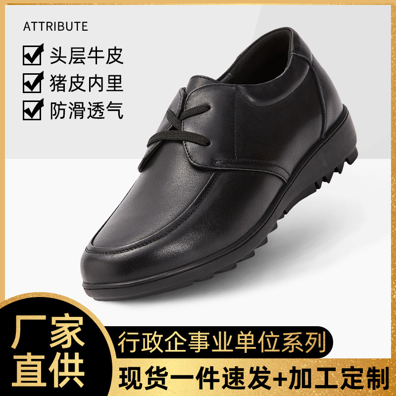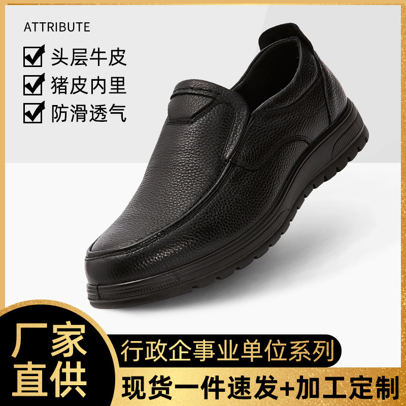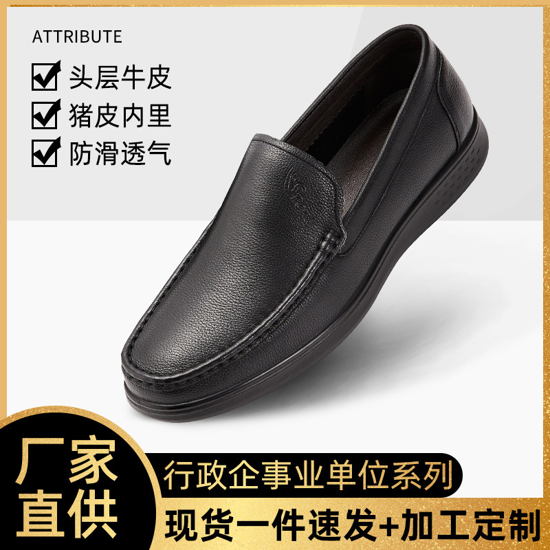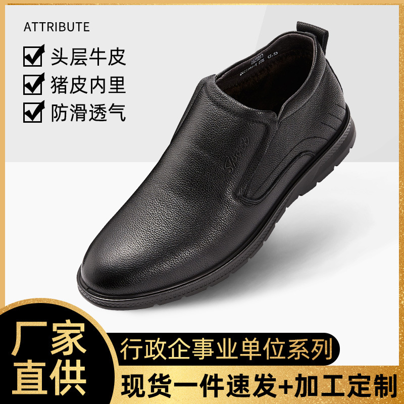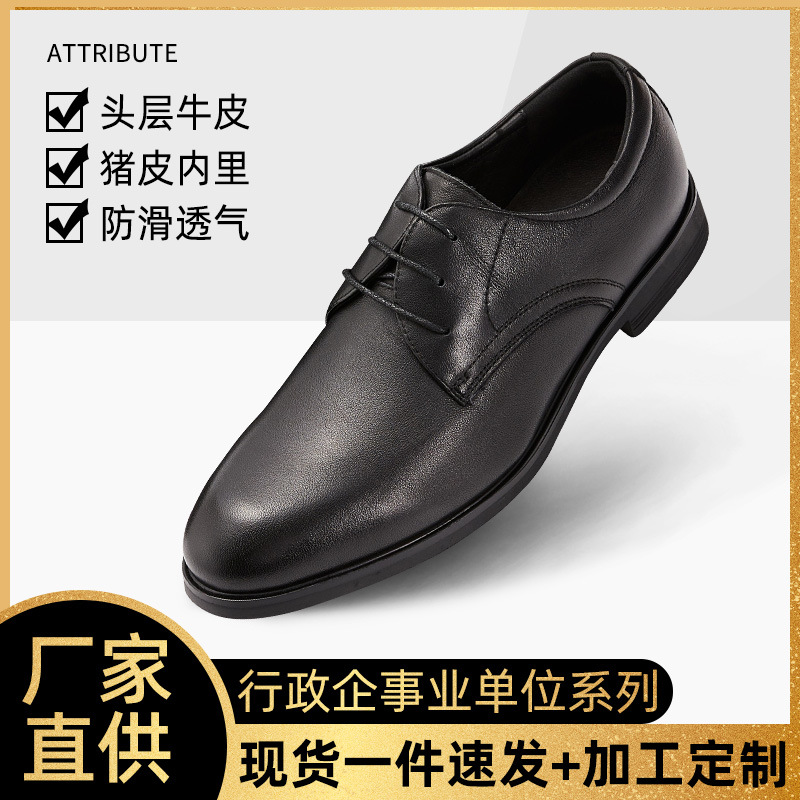 新款商务男鞋软皮休闲平底低帮鞋男圆头系带套脚工作男单皮鞋批发