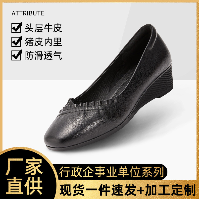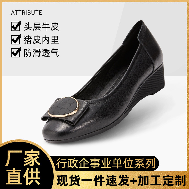 真皮软底坡跟时尚单鞋女2022春夏女鞋商务行政办公轻便无声皮鞋