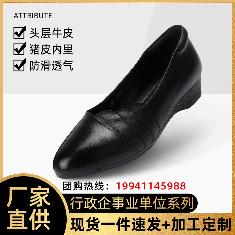 女士皮鞋职业高跟鞋防水台尖头黑色工作鞋真皮软底单鞋浅口代发
