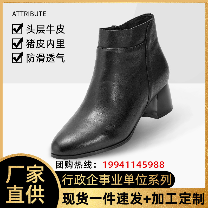 正装工作棉鞋女士皮鞋中跟职业女鞋软底行政酒店单鞋拉链商业鞋