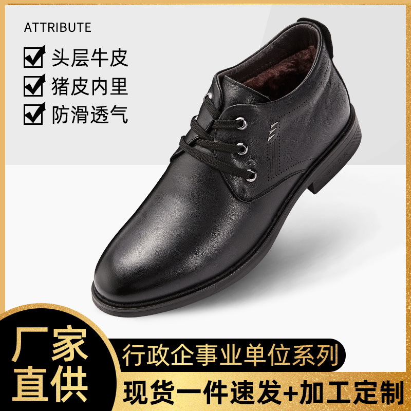 2022新款春季男士休闲牛皮棉鞋商务百搭男鞋黑色加厚保暖皮鞋