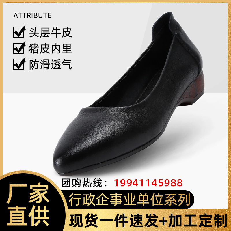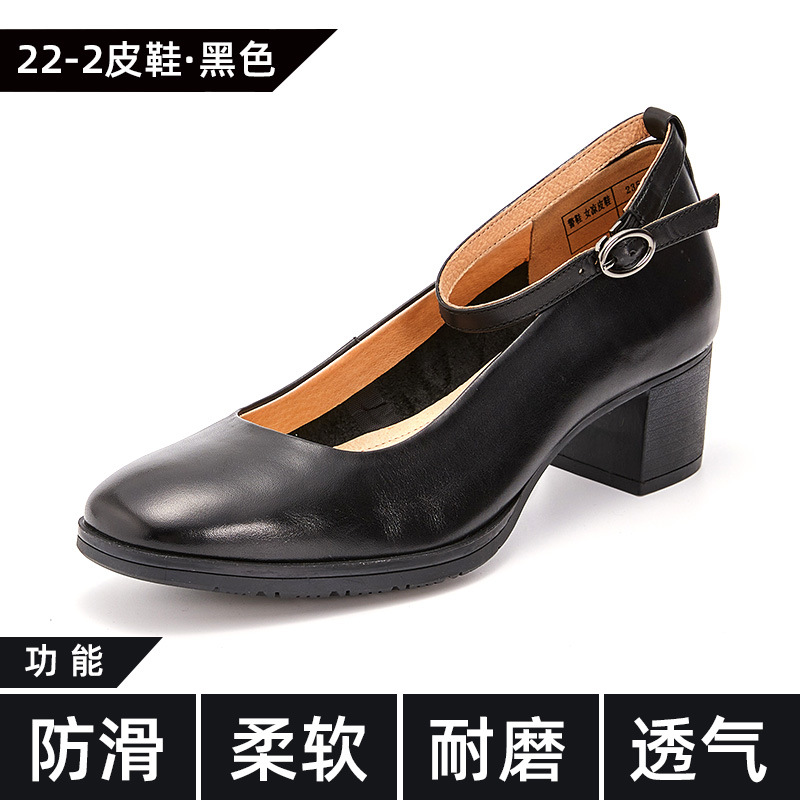 工作鞋女2022浅口舒适单鞋酒店行政办公鞋女士黑色工装真皮皮鞋