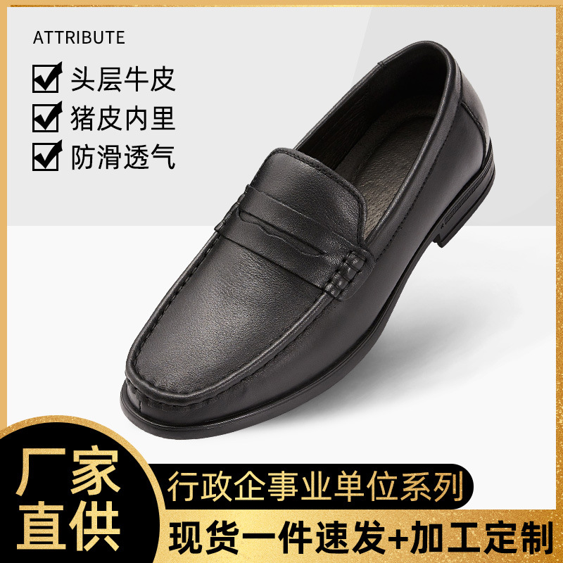 男士皮鞋2022夏季一脚蹬商务皮鞋男牛皮真皮鞋休闲单鞋行政正装鞋