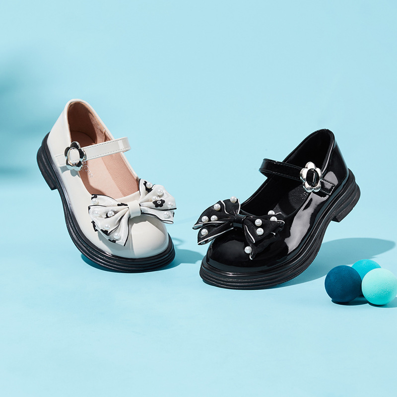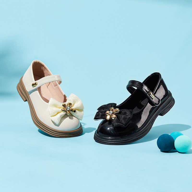 哈比熊童鞋2023春季新款女童小皮鞋韩版时尚质感蝴蝶结公主鞋