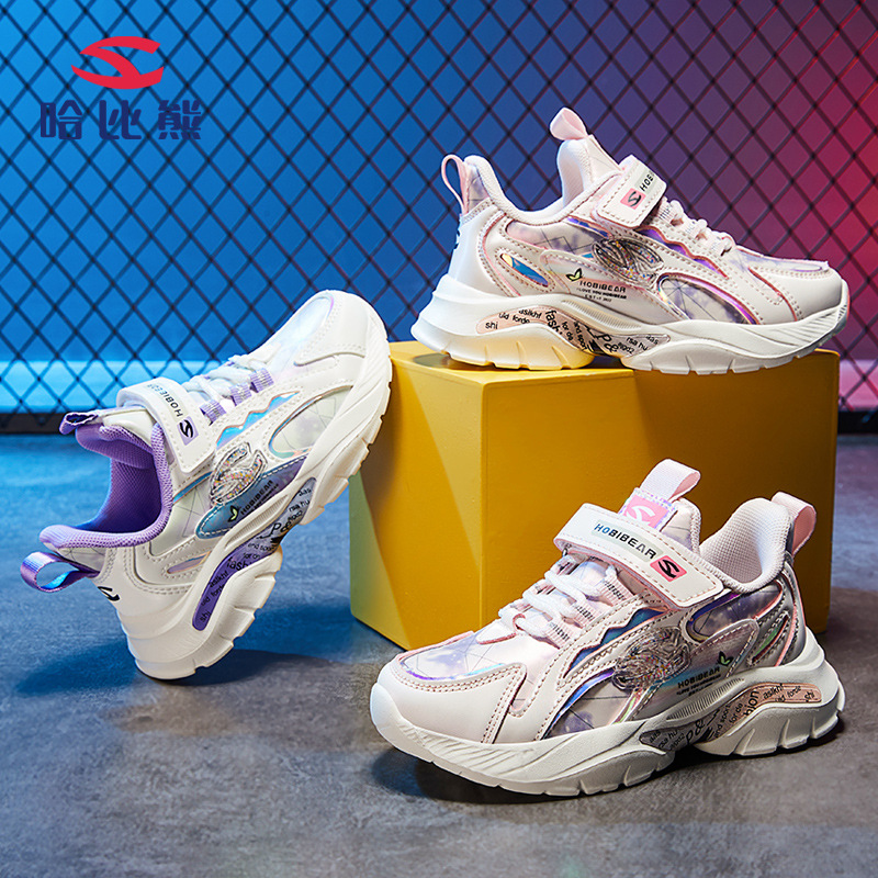 哈比熊品牌童鞋2022秋新款粉色女童运动鞋耐脏革面跑步鞋